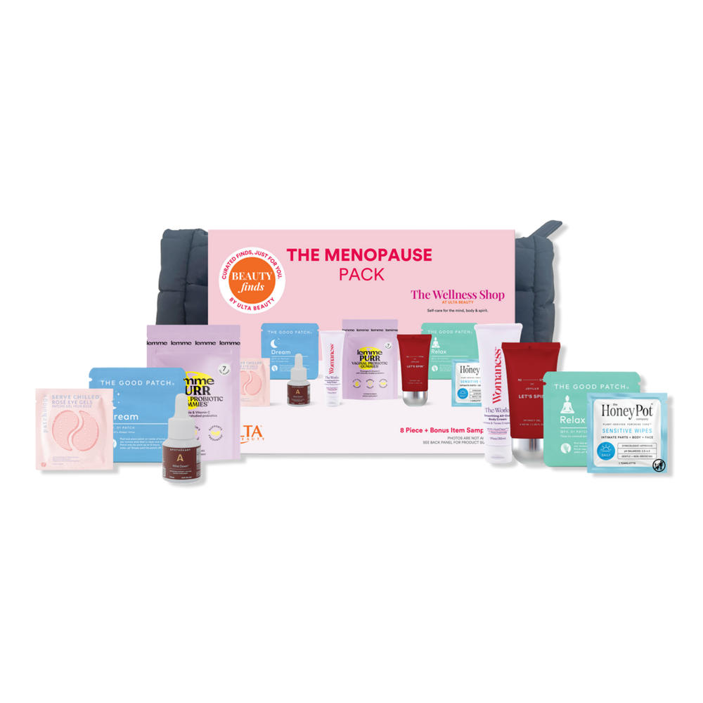 MENO PAUSE PACK. Includes: Apothkary, Wine Down (0.61 oz). The Honey Pot Company, Sensitive Feminine Travel Wipes (1 ea.). Joylux, Mini Let's Spin Intimacy Gel (1.35 oz). Lemme, Lemme Purr Vaginal Probiotic Gummies (14 ct.). Patchology, Serve Chilled Ros Eye Gels (1 pair). Revive Collagen, Menopause Max Liquid Collagen Drink - Bonus Item (0.65 oz). The Good Patch, Dream Dermal Wellness Patch (1 ct.). The Good Patch, Relax Dermal Wellness Patch (1 ct.). Womaness, The Works (1.0 oz). Benefits: Designed to speak to a universal moment in every woman's lifeone that deserves to be met with care, support, and thoughtful solutions.. This curated assortment not only reflects the breadth of our offering, but does so in a way that feels approachable, encourages discovery, and reinforces our commitment to delivering meaningful wellness experiences for our guests.. :
