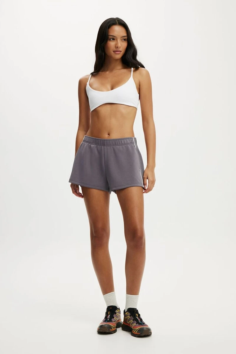 For all the ways you move. The Ultimate Soft Track Short has a shortie leg length with a sleek feel, side zip pockets for your essentials, and an elasticated waistband for easy movement. Made from a soft modal-poly blend with contrast lines down the side. Style it for the studio, the street, or anywhere in between.