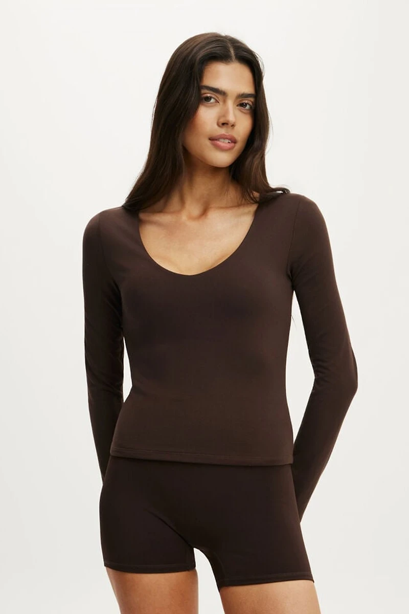 Perfect for Pilates, walking, and everything in between. The Ultra Soft Scoop Neck Long Sleeve is made from ultra soft fabric with a quick-dry finish, fitted body shape, scooped neckline, and hip-length cut. Designed for low-intensity workouts but works just as well for everyday. Pair it with matching leggings, sports bras, tanks, or jackets from the active range for the full look.