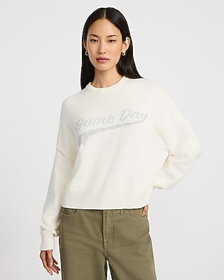 A lightweight crew neck sweater complete with a crew neckline and a "Game Day" text graphic.