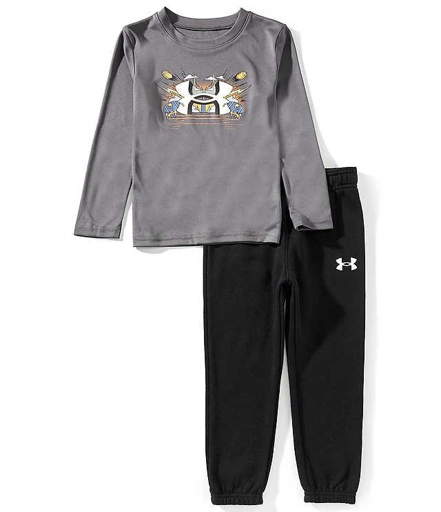Under Armour Little Boys Long Sleeve Football Logo T-Shirt & Fleece Jogger Pants 2-Piece Set