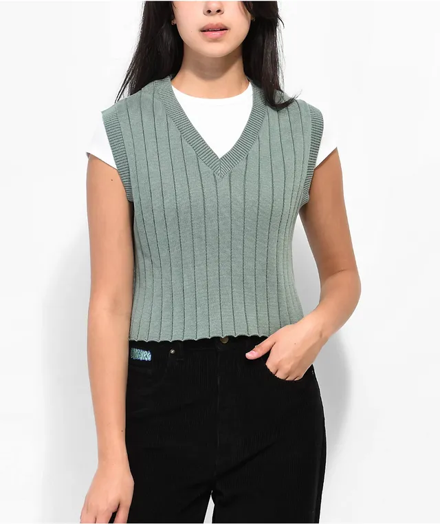 Your Highness Freefall Green Crop Sweater Vest
