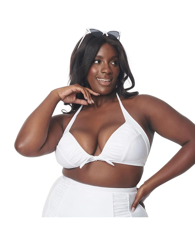 Unique Vintage Plus Size Molded Cup & Shirred Band Halter Swim Top