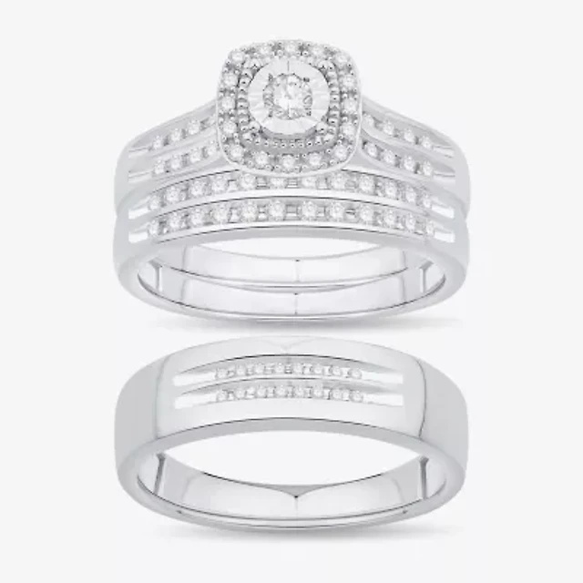 Unisex Adult 3/8 CT. T.W. Natural White Diamond 10K Gold Halo Side Stone Ring Set