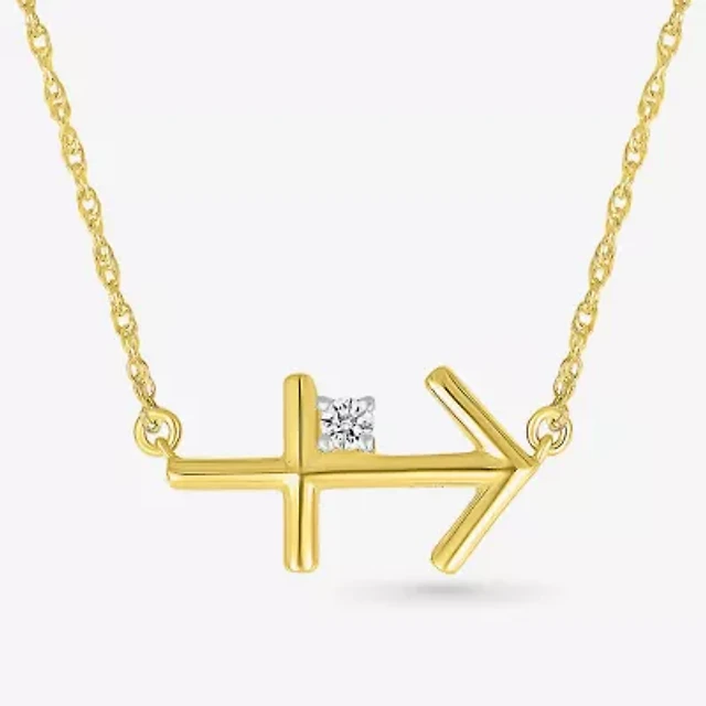 Womens Diamond Accent Natural White Diamond 10K Gold Cross 18 Inch Pendant Necklace