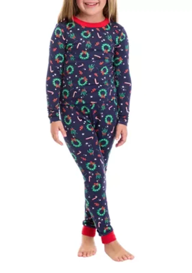 Unisex Big Kids Holiday Wreaths Pajama Set