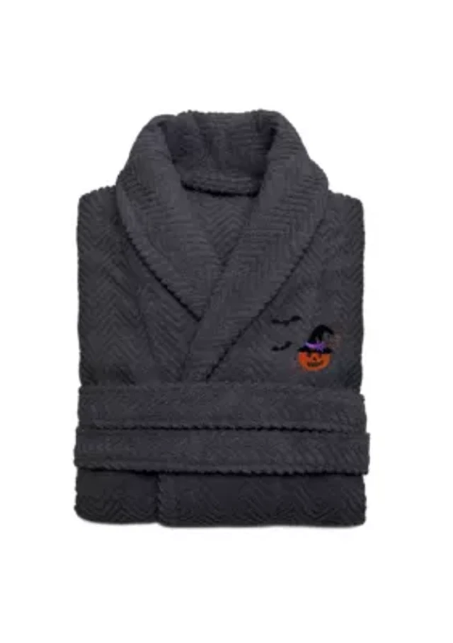 Unisex Herringbone Bathrobe Embroidered with Pumpkin Head Design