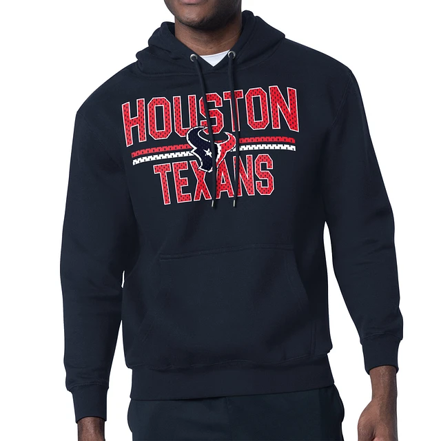 Men's Starter Navy Houston Texans Raglan Long Sleeve Hoodie T-shirt