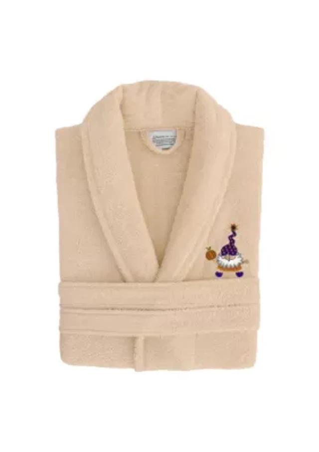 Unisex Terry Bathrobe Embroidered with Halloween Gnomes Design