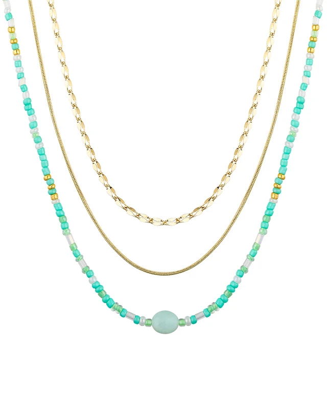 Unwritten Amazonite Beaded Snake Chain Layered 3-Piece Necklace Set
