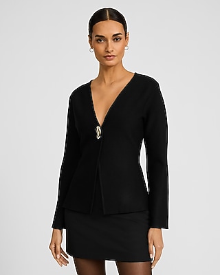 V-Neck Long Sleeve Single Novelty Button Cutaway Sweater