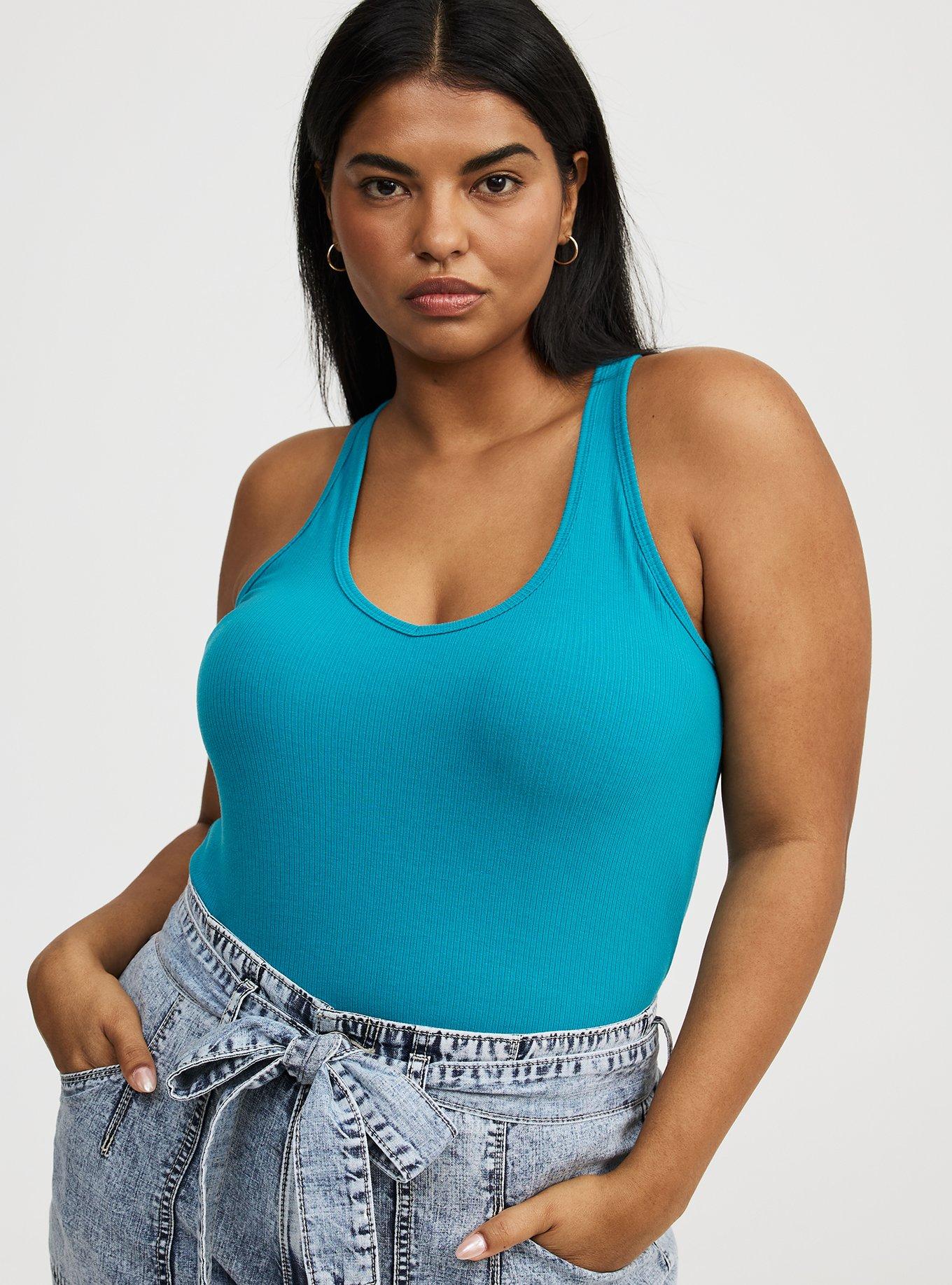 FIT Measures 30'' from shoulder (size 2). MATERIALS + CARE Super Soft Rib knit fabric: Tucked in or not, this ultra-soft and stretchy textured knit is your perfect base layer. Stretch level: Maximum. 59% polyester, 31% rayon, 10% spandex. Machine wash cold. Line dry. Imported. DETAILS V-shaped neckline. Racerback. Sleeveless.