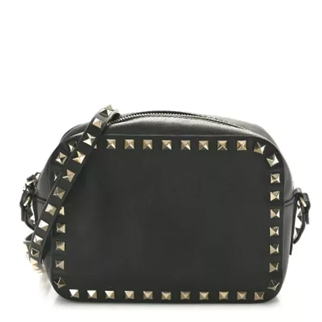 Valentino Garavani Calfskin Rockstud Camera Crossbody Bag Black -FINAL SALE NO RETURNS
