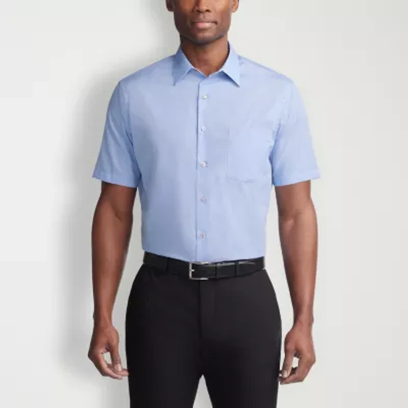Van Heusen Poplin Mens Regular Fit Easy Care Wrinkle Free Short Sleeve Dress Shirt