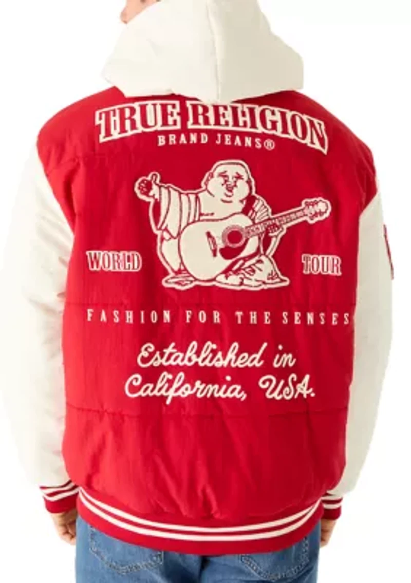 Varsity Hooded Mylon Puffer Jacket