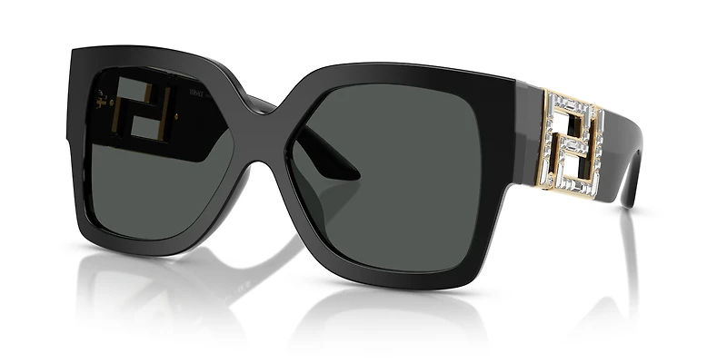 Elevate your style with the Versace VE4402 sunglasses. The sleek rectangular frames, crafted from polished acetate, offer clean lines and structure. Designed with comfortable nylon temples, they promise effortless wear without compromising elegance. Finished with classic grey lenses and a bold black frame front, these black sunglasses are a chic choice for refined sophistication.
