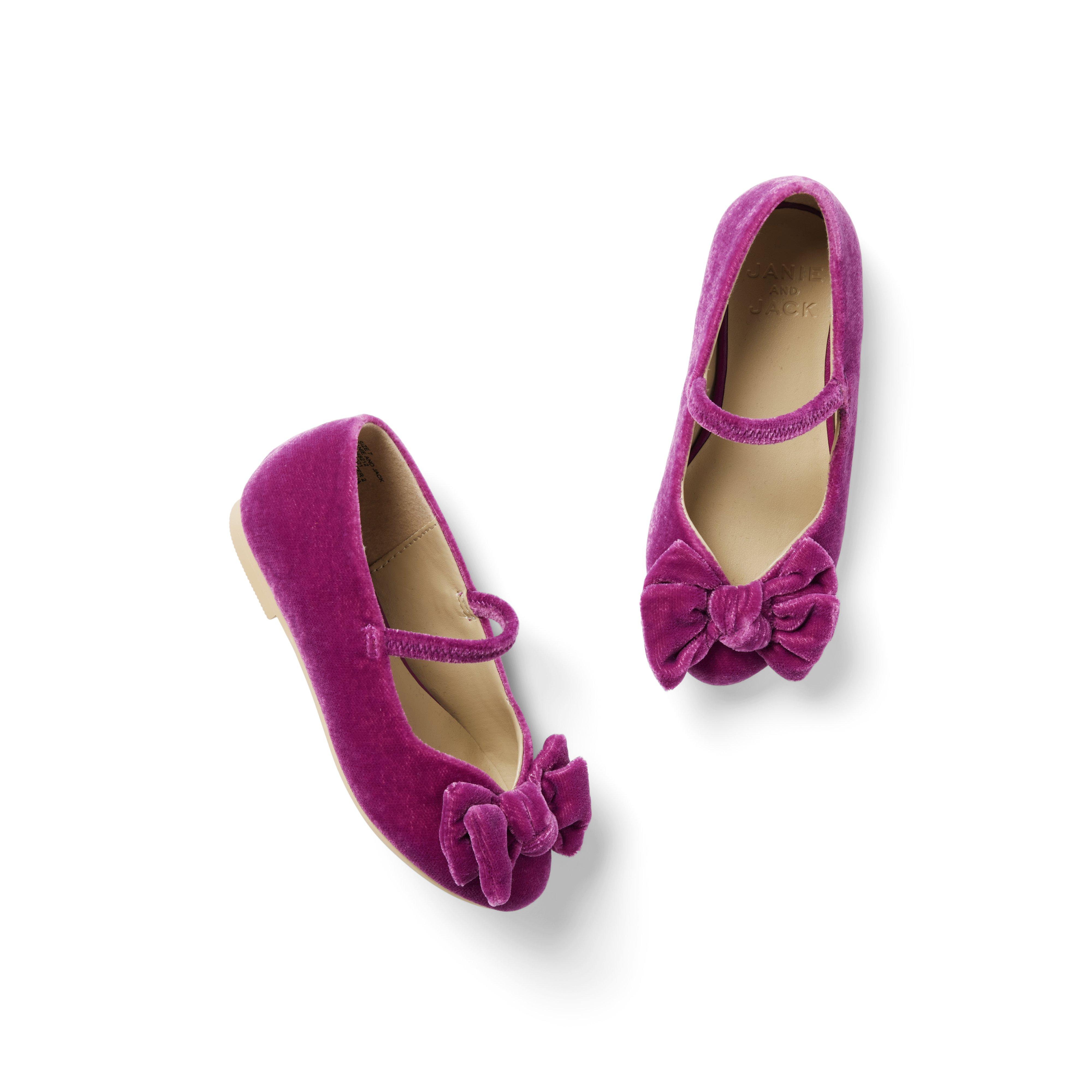 Plush velvet and bows? These flats are our kind of fancy footwork. Velvet; Manmade Material Sole Elasticized Strap On Sizes 4 to 8 Only Spot Clean; Imported