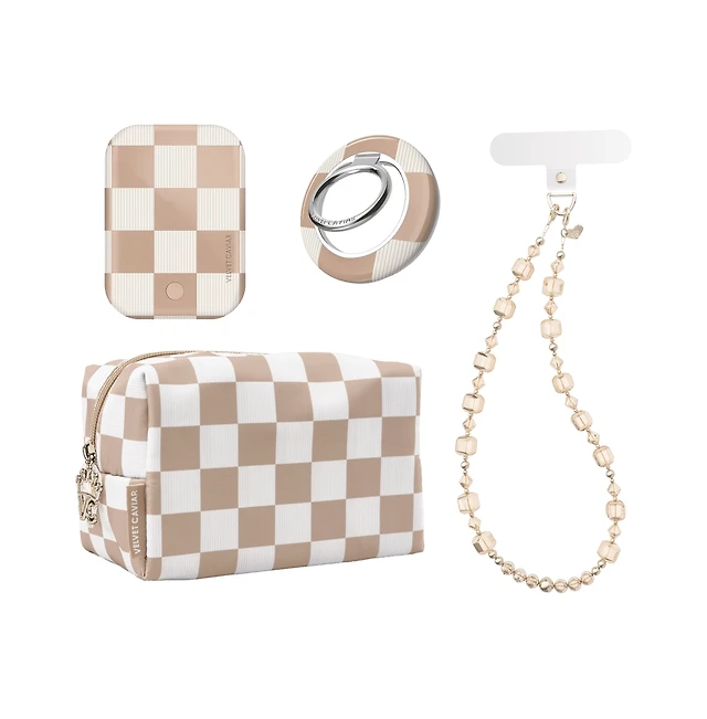 Velvet Caviar Phone Accessories Gift Set includes Charm, Battery Pack, Grip Ring and Travel Bag