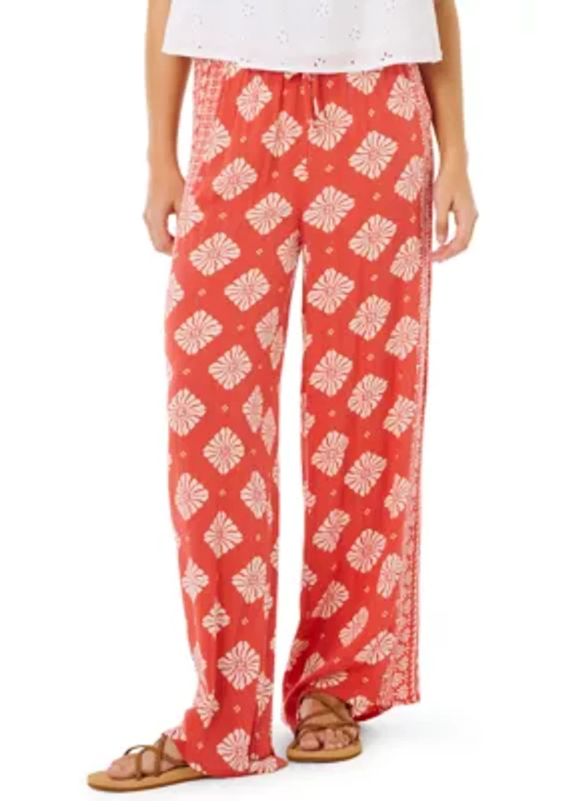 Experience ultimate comfort and effortless style with these RIP CURL wide-leg trousers. Designed for a relaxed fit with a mid-rise waist, they feature a flattering silhouette and a comfortable drawstring closure. The all-over yardage print and subtle border detail add a touch of sophistication, while the metal logo trim elevates the design. Drawstring closure Relaxed fit Imported Product Specifications 31" inseam Material & Care 100% viscose Machine washable