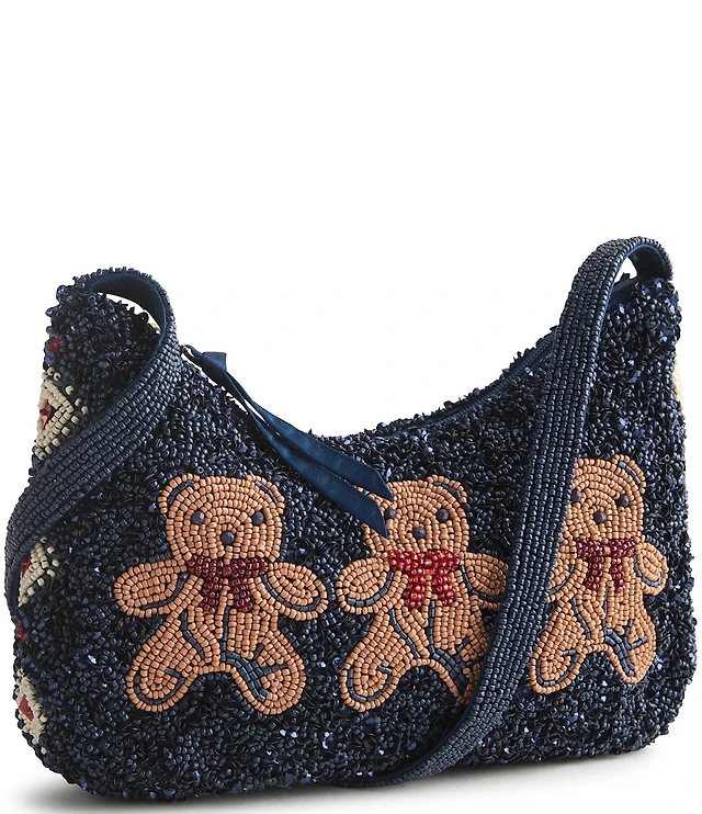 Vera Bradley Mini Roxbury Crescent Bunch of Bears Beaded Zip-Top Shoulder Bag