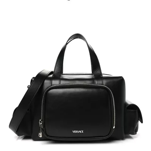 Versace Calfskin Cargo Boston Bag Black -FINAL SALE NO RETURNS