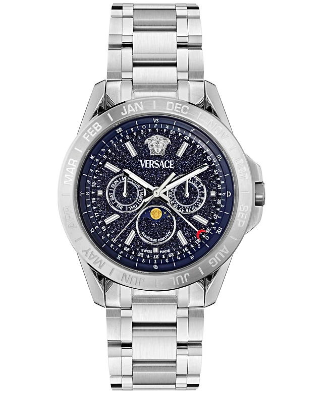 Versace Men's Swiss V-Galaxy Moonphase Stainless Steel Bracelet Watch 43mm