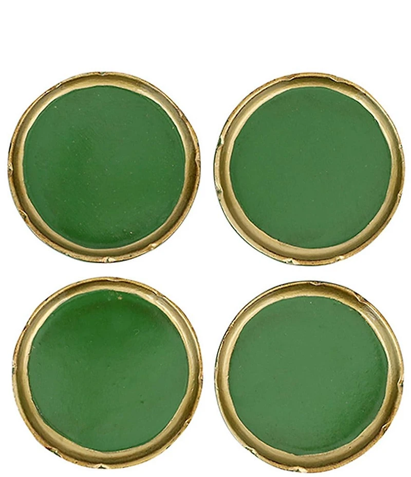 VIETRI Florentine Wooden Accessories Green & Gold Coasters, Set Of 4