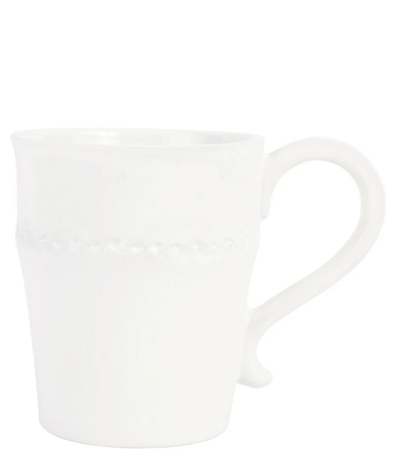 From VIETRI, this mug features: The Giorno White Mug captures the essence of casually elegant Italian style, blending both relaxed and refined elements. A wreath of precise etchings encircles the mug, while the nuanced glazing adds a beautiful patina to each piece. Giorno Collection Italian Stoneware - A mix of different clays including a stoneware clay that can be fired at higher temperatures and provides added strength to the product Dishwasher safe, microwave safe, oven safe Measures approx. 4.25" H, 12-oz Imported.