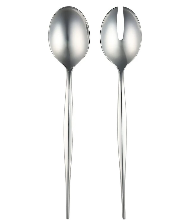 From VIETRI, this salad serving features: Inspired by blades of grass, the Natura Salad Serving Set features a grass-like line down the center of each handle. Versatile and modern, this collection comes in a glossy and satin finish. 18/10 Stainless Steel Natura Collection Glossy / Satin finish Dishwasher safe Measures approx. 9.25"L Imported.