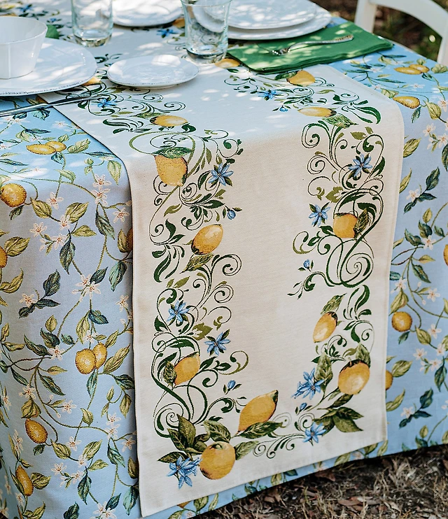 VIETRI Tavola Lemons with Blue Flowers Runner