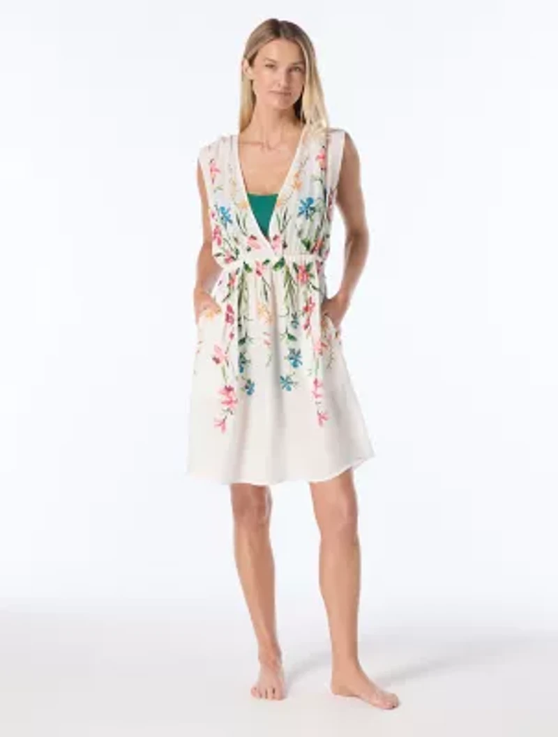 Pack this feminine floral cover up dress in your carry on because it's perfect for any sunny destination. Complete your swim look and pair it with a coordinating printed or solid swimsuit. The garden inspired print adds a splash of color and charm to this chic cover up. Imported Material & Care Rayon Hand wash