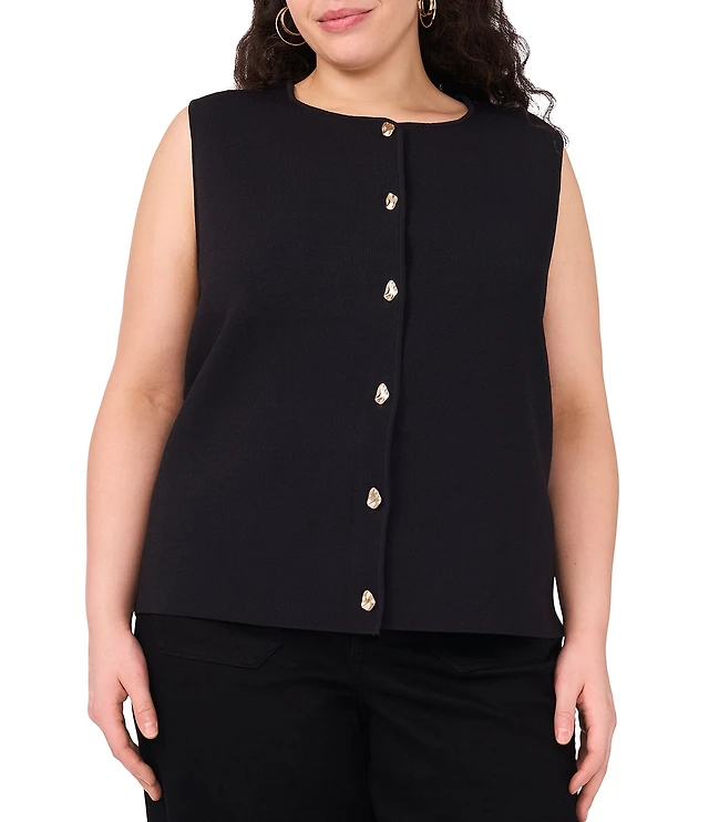 Vince Camuto Plus Size Round Neck Sleeveless Sweater Vest