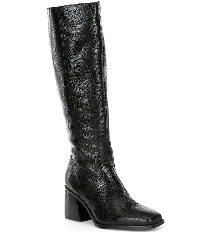 Vince Camuto Sangeti Leather Square Toe Block Heel Tall Boots