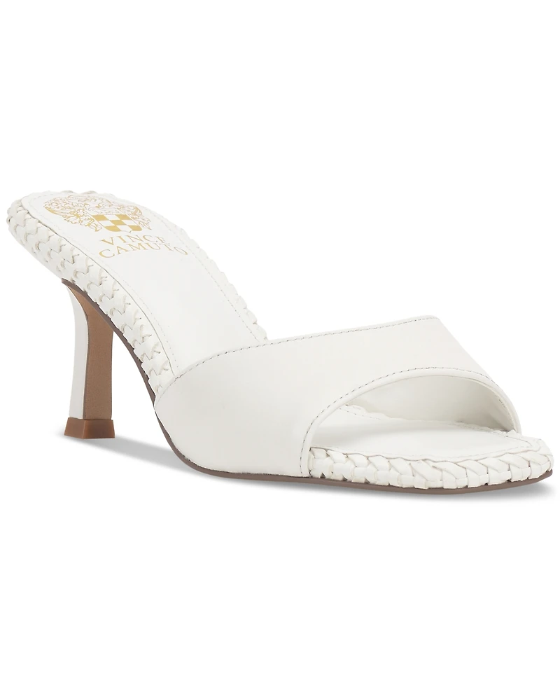 The sleek style of Vince Camuto's Emmla slides is outlined in braided trim around the soles for a fresh touch.