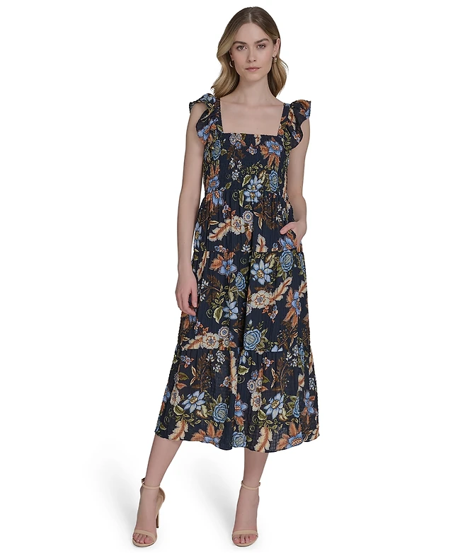 CeCe Women's Smocked Back Sleeveless Square Neck Midi Dress