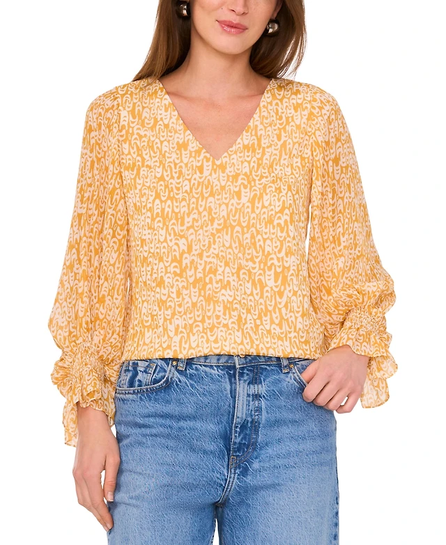 Vince Camuto Women's V-Neck Pleated-Sleeve Blouse