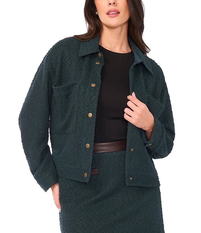 Vince Camuto Woven Point Collar Long Sleeve Cropped Coordinating Jacket