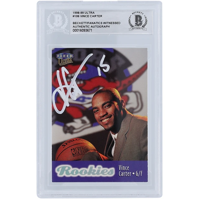 Vince Carter Toronto Raptors Autographed 1998-99 Fleer Ultra White Ink #106 Beckett Fanatics Witnessed Authenticated Rookie Card