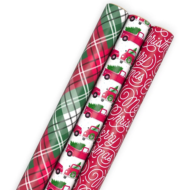 Vintage Classics 3-Pack Assortment Christmas Wrapping Paper Roll Bundle, 105 sq. ft. total for only USD 14.99 | Hallmark