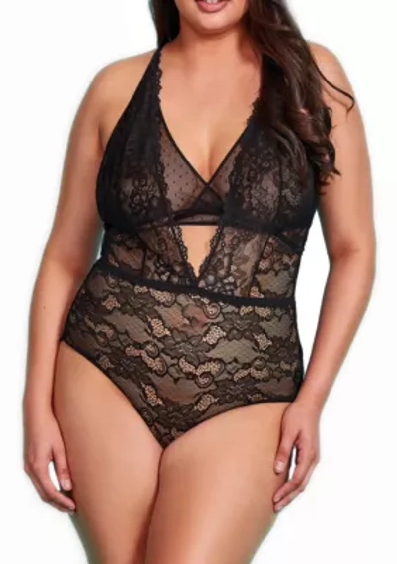 Viola Plus Dotted Mesh & Floral Lace Halter Bodysuit Lingerie in Franklin, TN