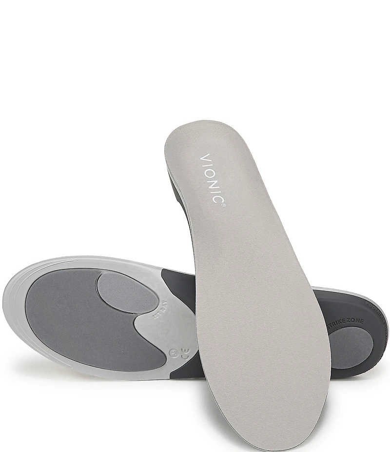 From Vionic, the Active Full Insoles feature: Received APMA Seal of Acceptance EVA orthotic with re-enforced, hardened plastic shell for added motion control & stability Cushioned shock dot in the heel for added shock absorption Contoured around the heel & arch areas to achieve complete foot contact Designed with trim marking for a custom fit if necessary. See packaging instructions for more details Fresh antimicrobial and Odorban™ anti-odor top cloth Contoured around the heel and arch areas to achieve maximum foot contact For best results, it is recommended that you replace your orthotics every 6-8 months Imported.