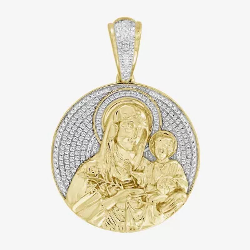 Virgin Mary Mens 1/4 CT. T.W. Natural White Diamond 10K Gold Pendant
