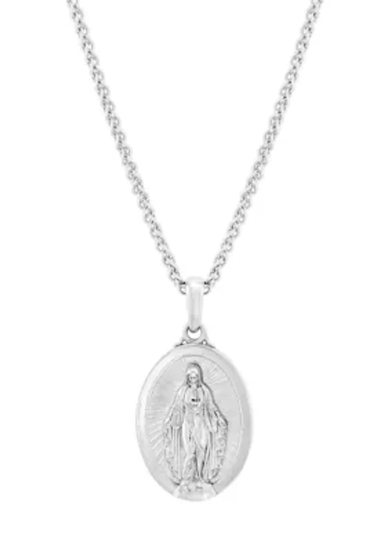 Crafted from gleaming sterling silver, this Belk & Co. necklace features a beautifully detailed pendant showcasing the Virgin Mary. Fish hook closure Polished finish Imported Belk Exclusive Product Specifications 20" L Material & Care Sterling silver Clean with a soft cloth