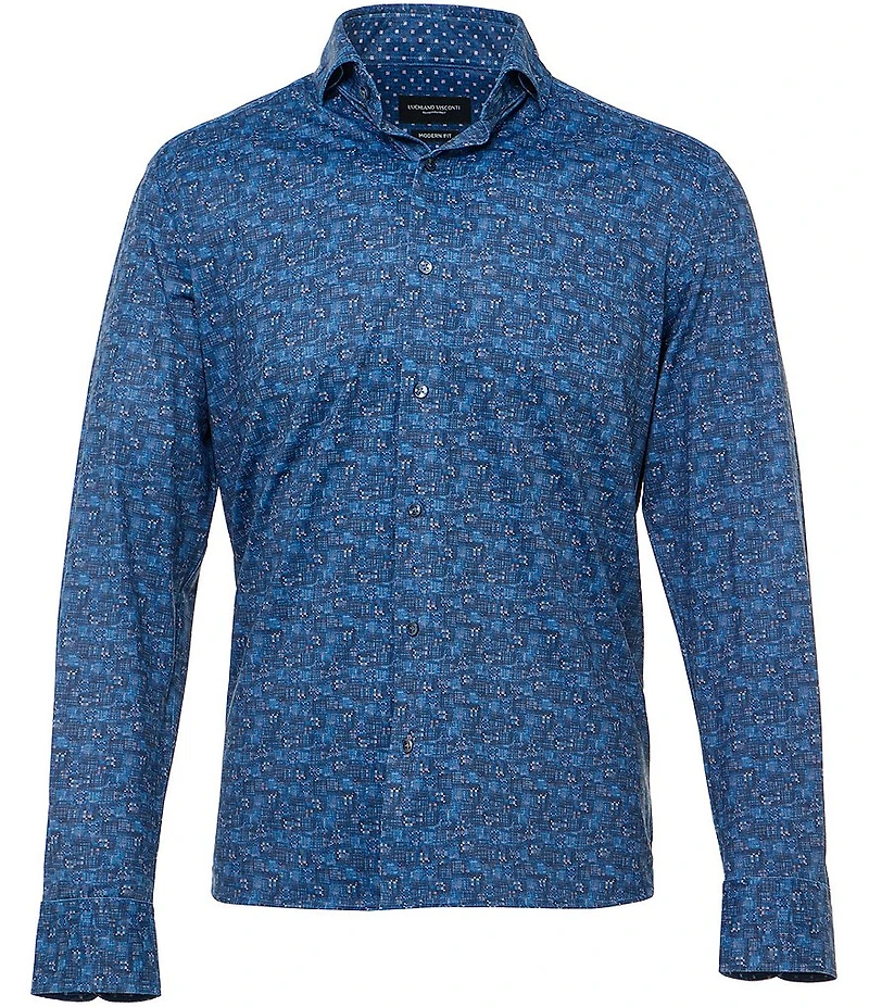 Visconti Big & Tall Abstract Geo Print Stretch Long Sleeve Woven Shirt