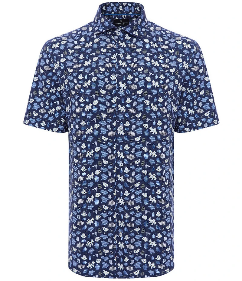 Visconti Puzzle Print Stretch Short Sleeve Woven Shirt