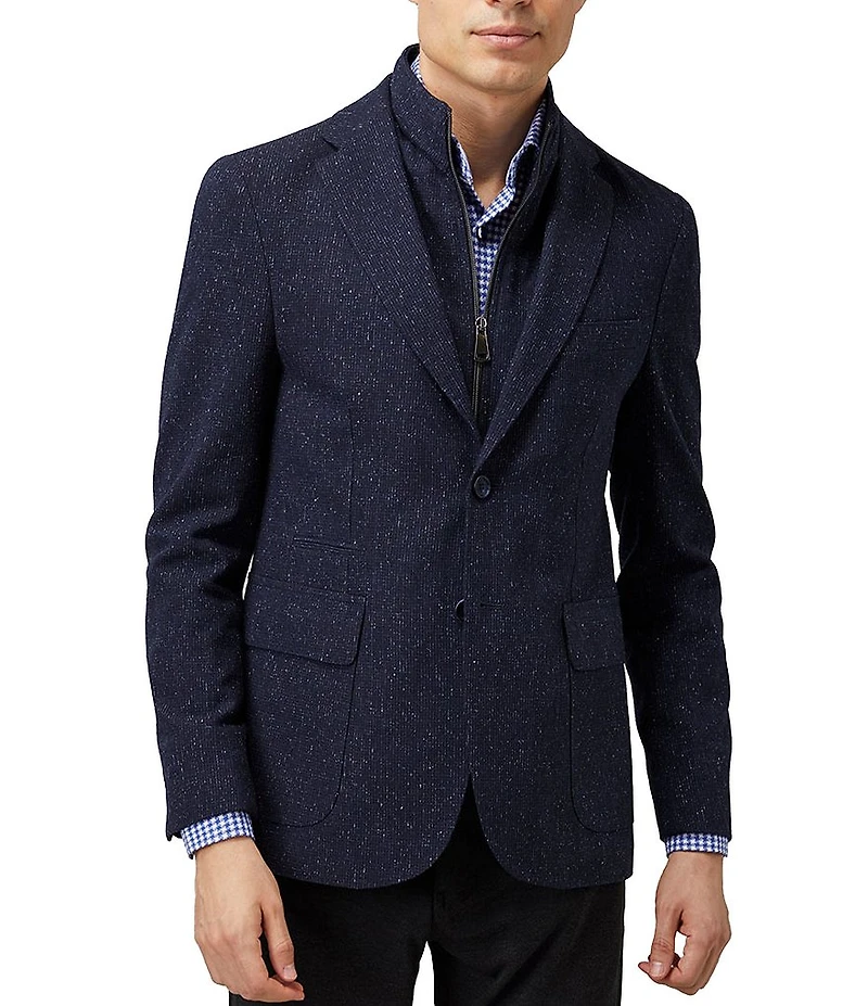 From Visconti, this sportcoat features: Allover speckle detail Removable collar Long sleeves Full-zip and 2-button closure Dual waist flap pockets Wool/viscose/polyester/polyamide/elastane Dry clean only Imported.