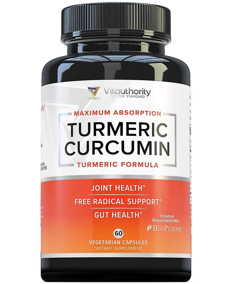 Vitauthority Turmeric Capsules with Bioperine Black Pepper, Antioxidant Support for Healthy Joints and Inflammation Relief, 60 ct