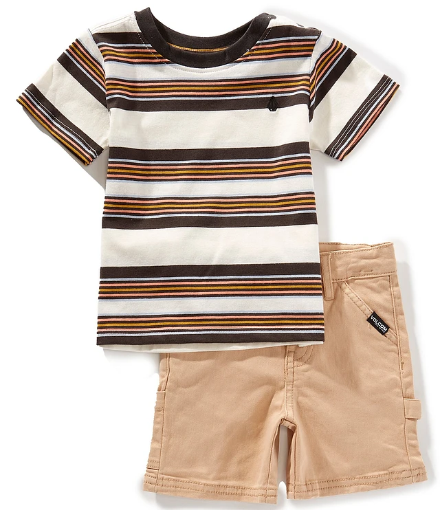 Volcom Baby Boys Striped Short Sleeve T-Shirt & Coordinating Solid Shorts Set