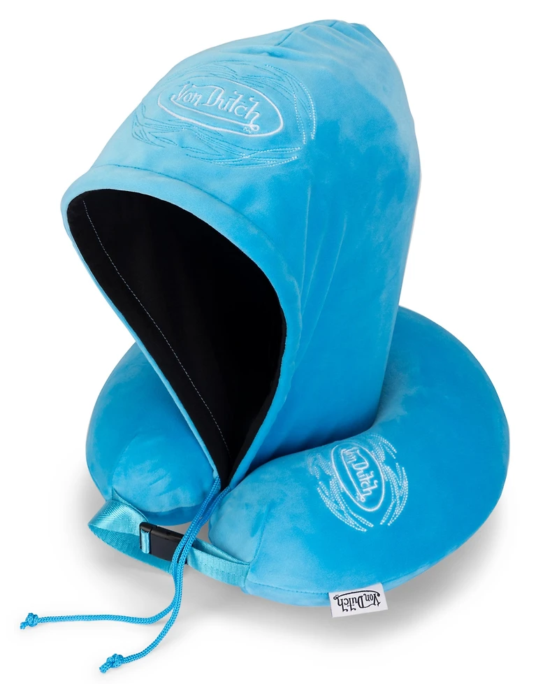 The pinstripe hooded travel pillow delivers Von Dutch's signature mix of rebellious design and real comfort. Featuring the brand's embroidered pinstripe logo and a built-in hood, it blends street-ready attitude with travel-friendly function. Made from ultra-soft memory foam and finished with plush velour, this pillow turns every trip into a statement of comfort and style.