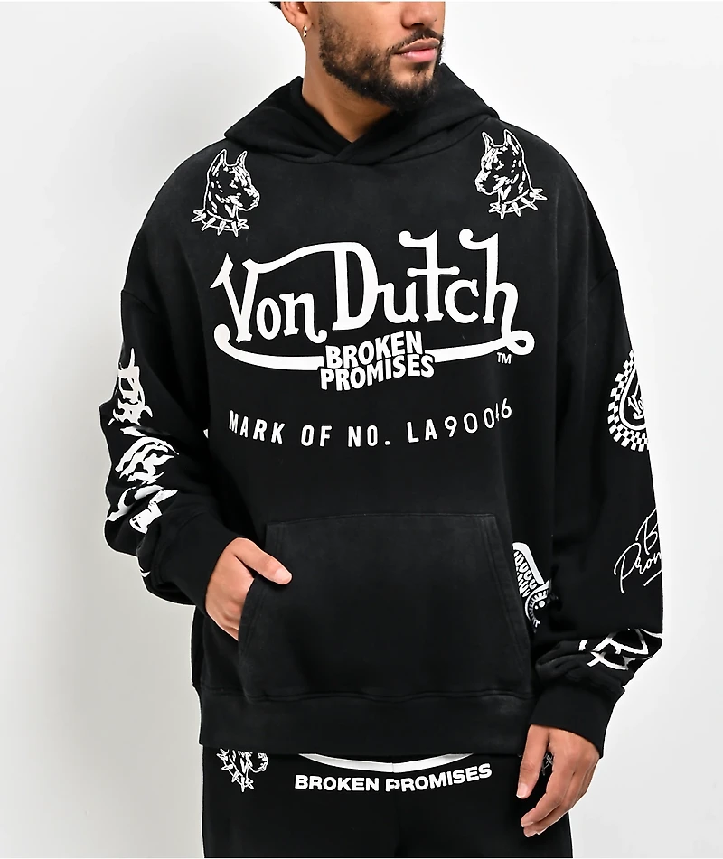 Von Dutch x Broken Promises All In Black Wash Hoodie